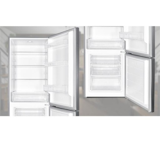 - Wyposażenie: 4 półki szklane, 3 półki w drzwiach, pojemnik na jajka, 1 szuflada na warzywa i owoce