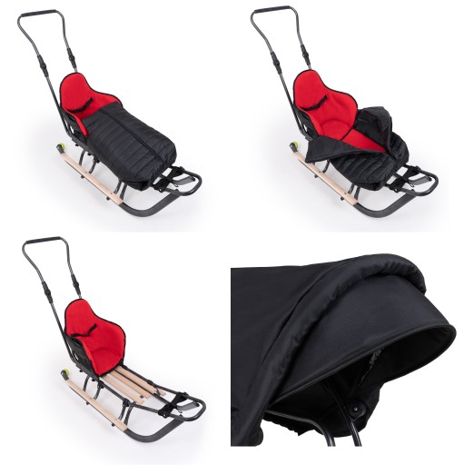 Sanki posiadają pchacz i oparcie,które można bardzo łatwo zdemontować.