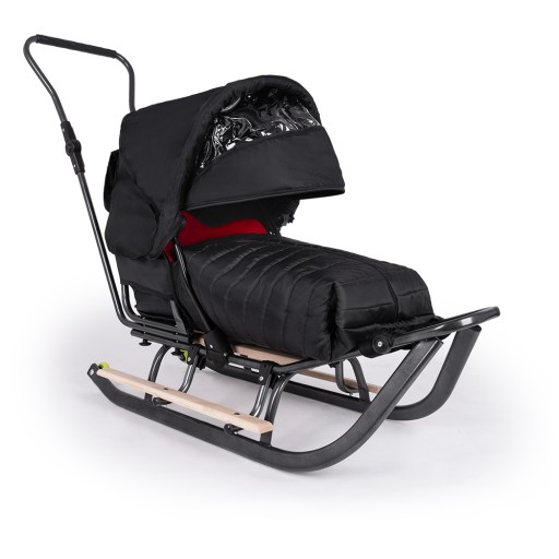 Polskie wielofunkcyjne sanki, wyposażone w budkę, śpiwór, pchacz, podnóżki i kółka model Termo_Pik Line na sezon 2025/2026 znakomicie sprawdzą się w śnieżne dni i zapewnią doskonały wypoczynek i zabawę Twojemu dziecku.