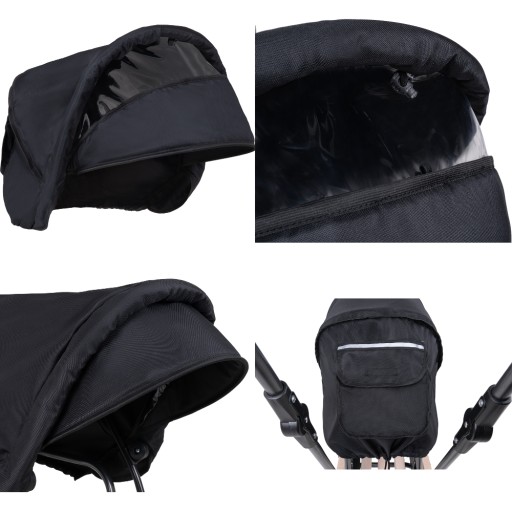 Podwójny daszek z wysuwaną szybką pozwoli podejrzeć malucha.