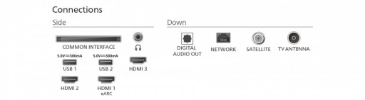 CI / CI+, cyfrowe optyczne/cyfrowe wyjście audio, HDMI 2.0, wyjście słuchawkowe, USB